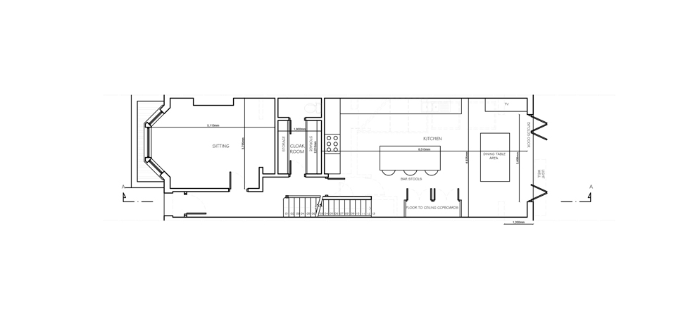 This development involved the further excavation and extension of current basement to create a space where the family could pursue their hobbies. As part of this development a ground floor extension was also created to facilitate an open kitchen/dining space, and lightwells placed on either end of the house to provide natural lighting to the basement.